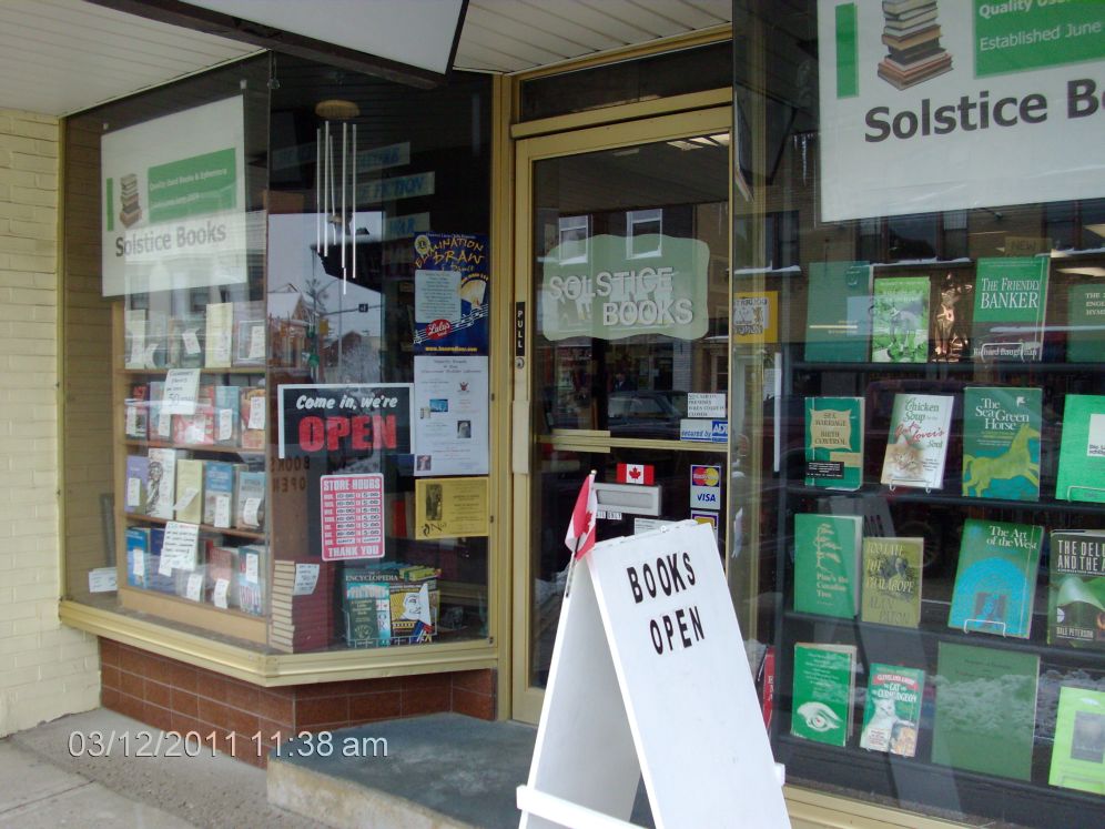 Solstice Books 312 10th Street Hanover, ON Canada (519) 364-5902 We offer over 10,000 quality secondhand books at prices competitive to our local market. We have books from all genres, everything from science fiction to history and sports to romance. We also sell ephemera such as postcards, prints and calendars. You ca |